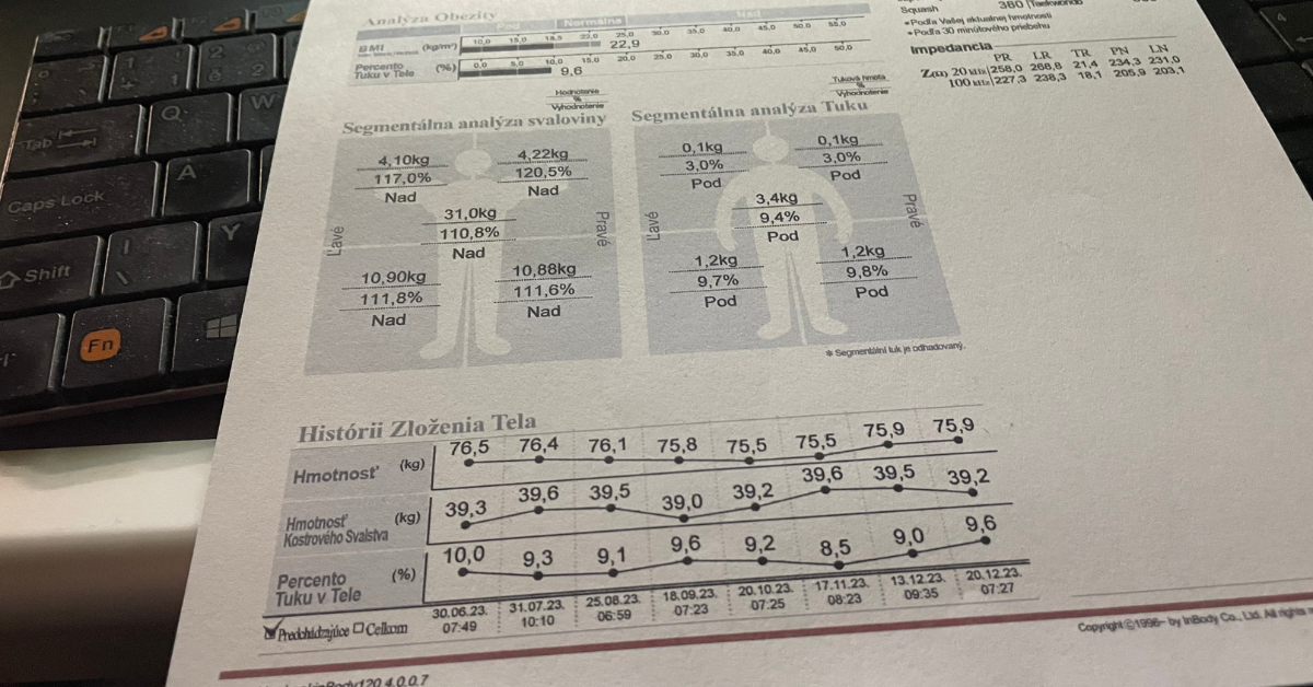 Na meranie používame profesionálny prístroj InBody 270, ktorý nám poskytuje detailné a presné informácie o telesnom zložení. Umožňuje zobraziť podrobné grafy a reporty, ktoré pomáhajú sledovať zmeny zloženia tela a monitorovať úspechy v cvičení a stravovaní.